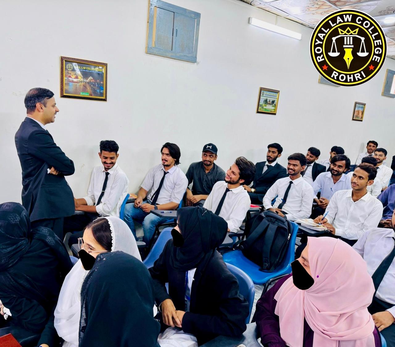 Royal Law College Rohri was honored to host Renowned Advocate Mr. Bilawal Hussain Baloch as a distinguished guest speaker. He delivered an insightful lecture on the importance of law and the qualities of a good advocate, which was attended by a large number of students.